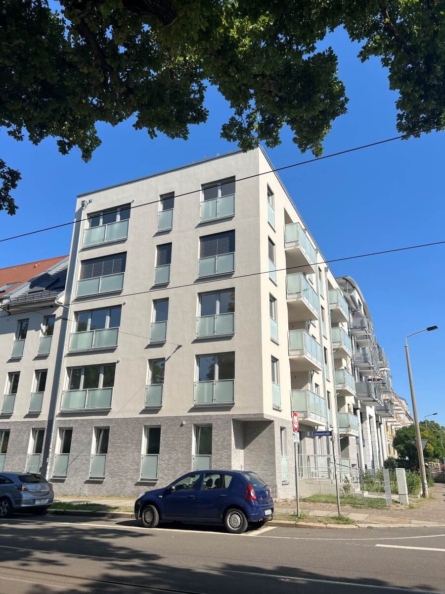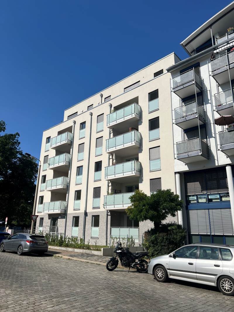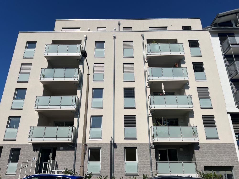 Der moderne Neubau hat eine zeitgemäße architek- tonisch klare Linienführung und überrascht das Auge mit einer nicht alltäglichen Formensprache: Über dem Erdgeschoss ist die Fassade zur Straße vorgezo- gen und erzeugt damit ein einzigartiges Raumerleb- nis. Weitere Vorsprünge dienen der Integration der Balkone, die in dem Eckhaus eine spannende Tiefen- wirkung erzeugen.