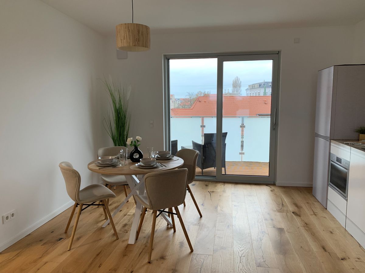 Die Eigentumswohnungen sind barrierefrei und verfügen über einen Balkon und/oder Loggia. Die Wohneinheit im Erdgeschoss wird behinderten- gerecht ausgestattet und verfügt über eine Terrasse. Im Erdgeschoss befinden sich weiterhin Fahrradstellplätze. Die Stellplätze für Pkw und die Abstellräume liegen im Untergeschoss.
